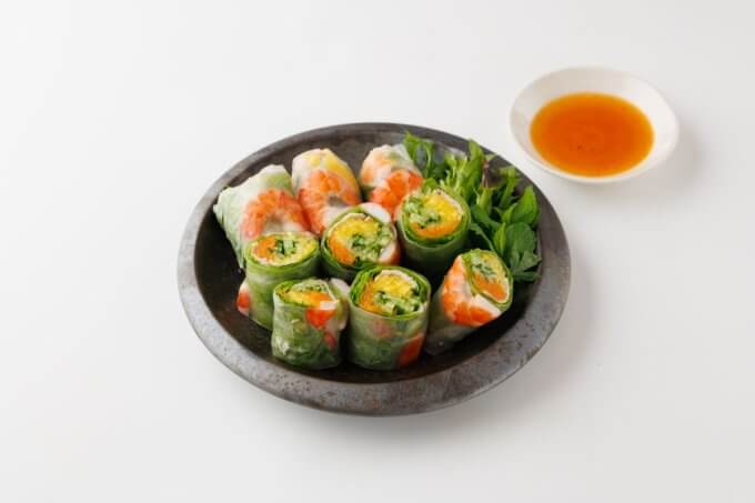 パイナップル入り生春巻き 完熟のパイナップルが入った生春巻きです。 手作りのピリ辛ソースが絶品! ※パクチー・ミントはお好みにより別添えです。 MENU LIST Recommended menu 関連のおすすめメニュー 生ハムと静岡産高級マスクメロン Prosciutto and high-quality Melon from Shizuoka prefecture ¥1,580(税込) 枝豆 Edamame ¥380(税込) 鶏のレモングラス炒め Stir Fried Chicken with Lemongrass ¥880(税込) 桃とモッツァレラチーズのカプレーゼ(夏期限定) Peach and Mozzarella Caprese (Summer Only) ¥2,080(税込)
